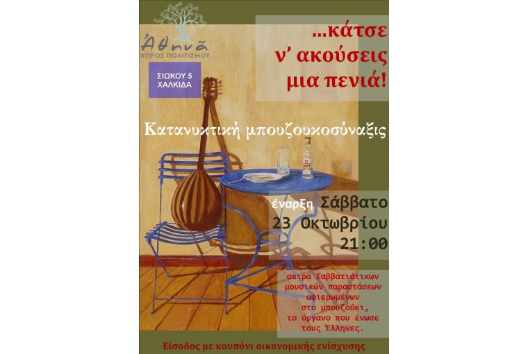 Τα Σαββατόβραδα στον χώρο Πολιτισμού Αθηνά, μοσχομυρίζουν Ελλάδα. Μια σειρά μουσικών παραστάσεων αφιερωμένων στο μπουζούκι, το όργανο που ένωσε τους Έλληνες, με έναρξη την 23η Οκτωβρίου.